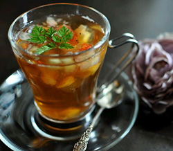 - 先ほど作っておいたフルーツ入り葛湯を好みの量だけ紅茶の中に加える。
