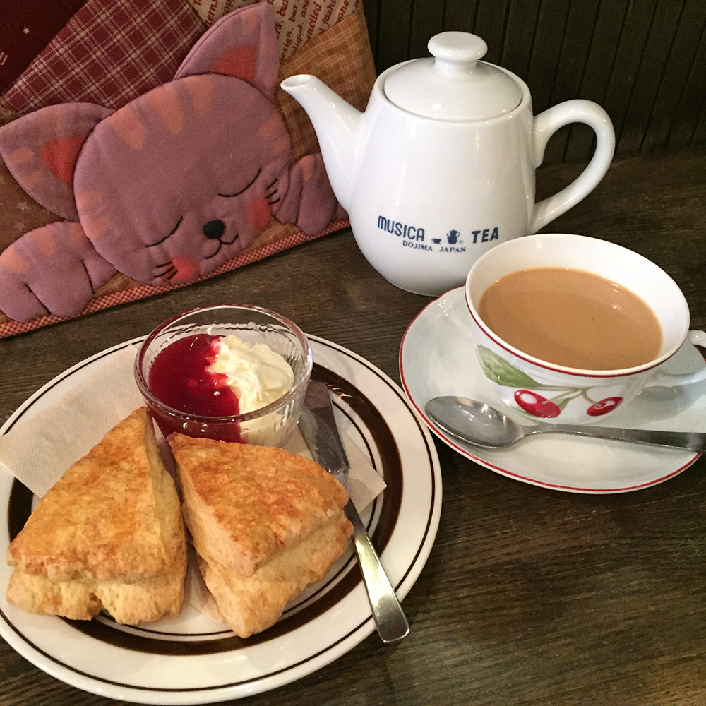 音楽の流れる静かな空間で丁寧に淹れたお茶と元パティシエ店主の作る優しい味わいのお菓子を味わっていただけます。英国風スコーンはイチオシ!